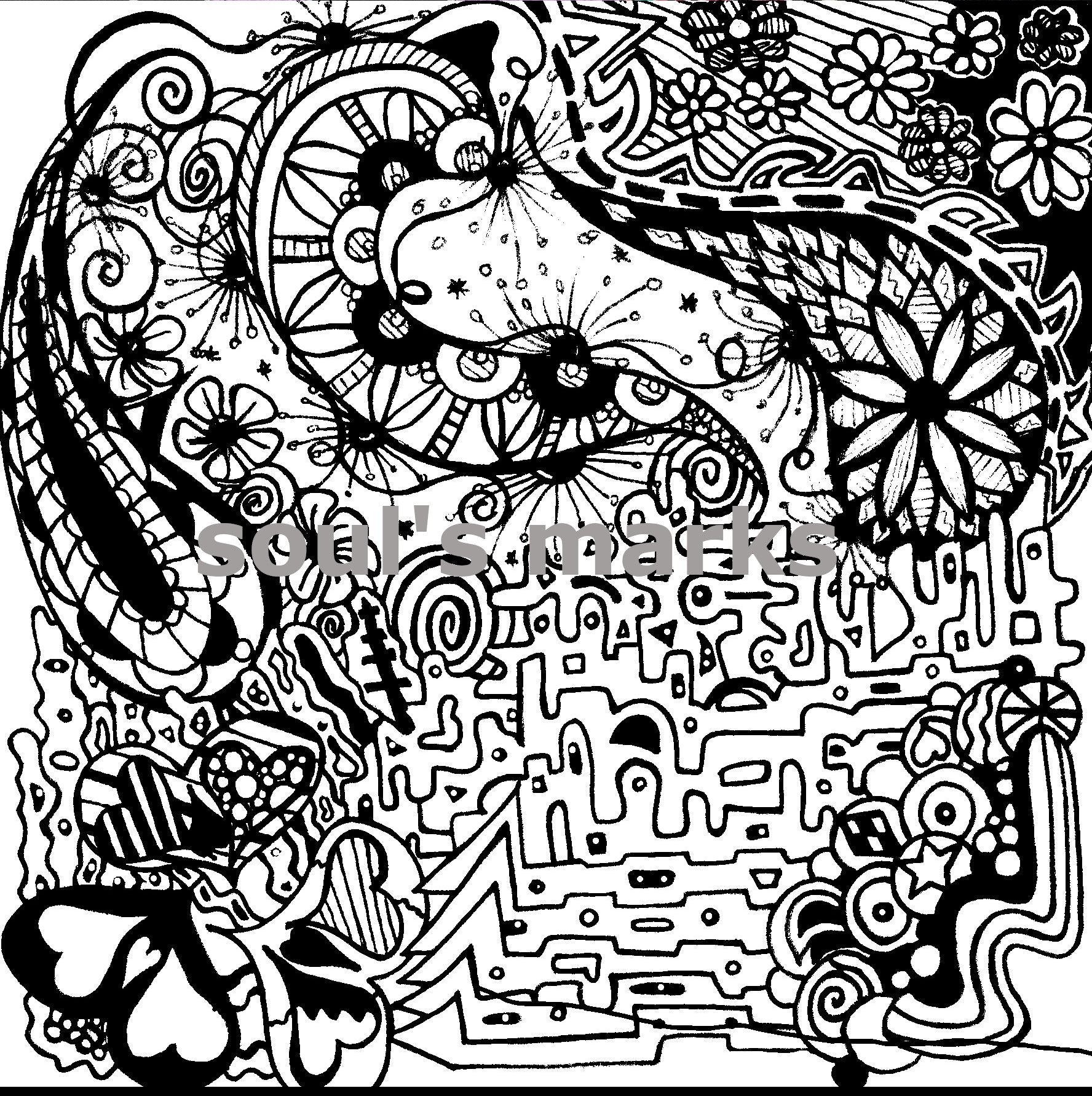 Unleash your creativity with this hand-drawn whimsical coloring page. Perfect for practicing mindfulness, relaxation, or unique digital art projects. High resolution, 300dpi printable file-- ready to download instantly! Print any size between 6 X 6 to 8.5 X 11 inches.